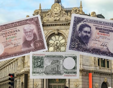 España, monedas y billetes tras la independencia de Guinea Ecuatorial en 1968.