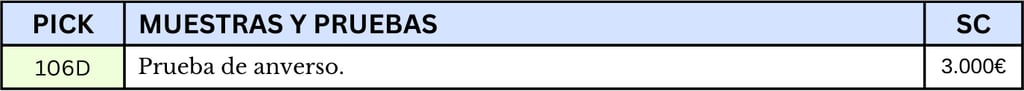 Según los datos del Banco de España este billete no llego a producirse pero si se conoce una prueba de anverso de color marrón granate, medallón marrón obscuro y el triunfo central en azul.