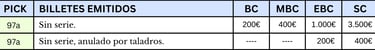 Ensayo no aceptado ya que al utilizar los mismos fondos que el valor de 10 pta. podría originar equívocos en personas analfabetas. Interesante el plantear una nueva numeración al incluir la letra “A” como nueva serie.