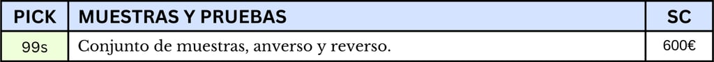 Conjunto formado por dos muestras, anverso y reverso. La numeración del anverso añadida con posterioridad. Posiblemente únicas conocidas.