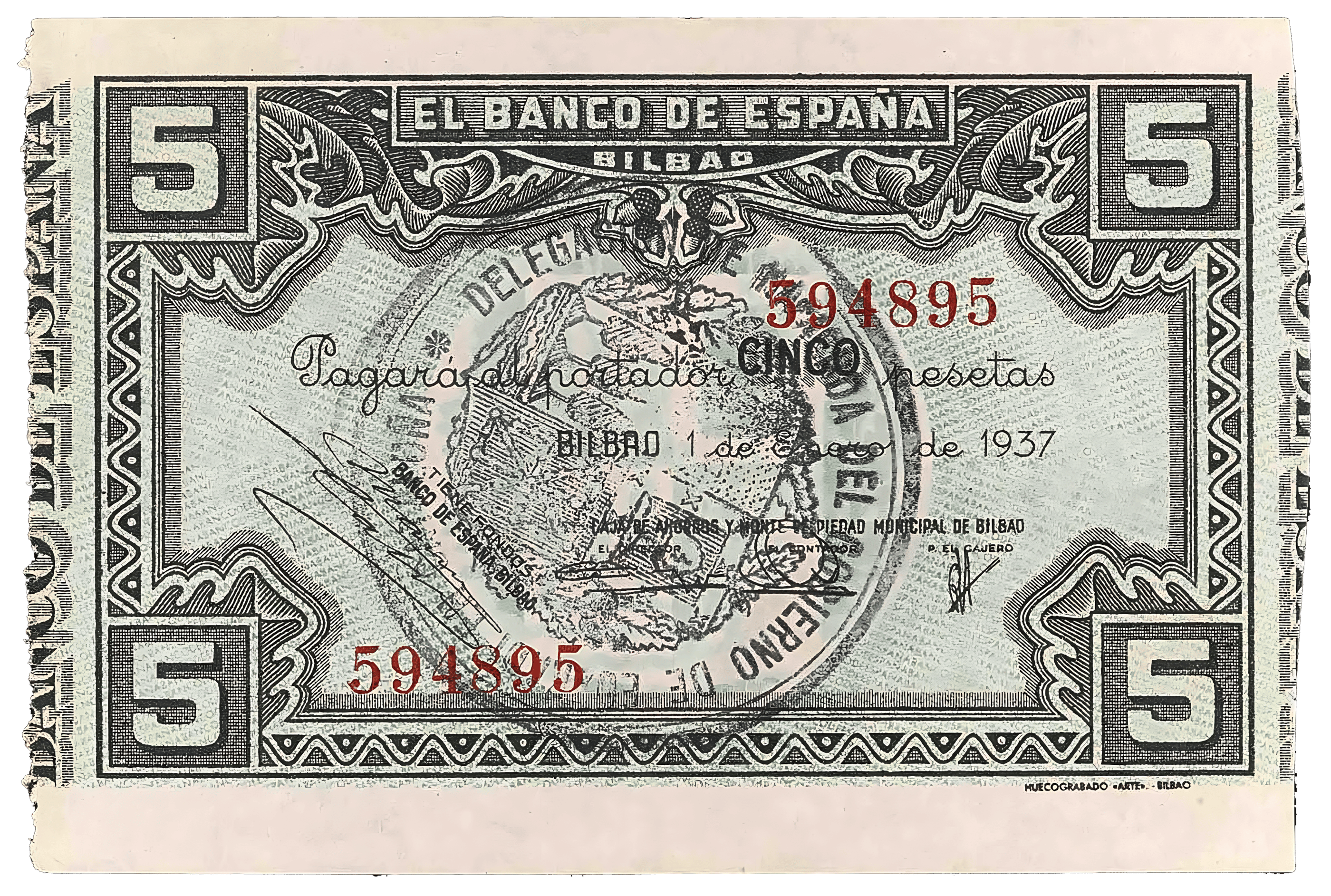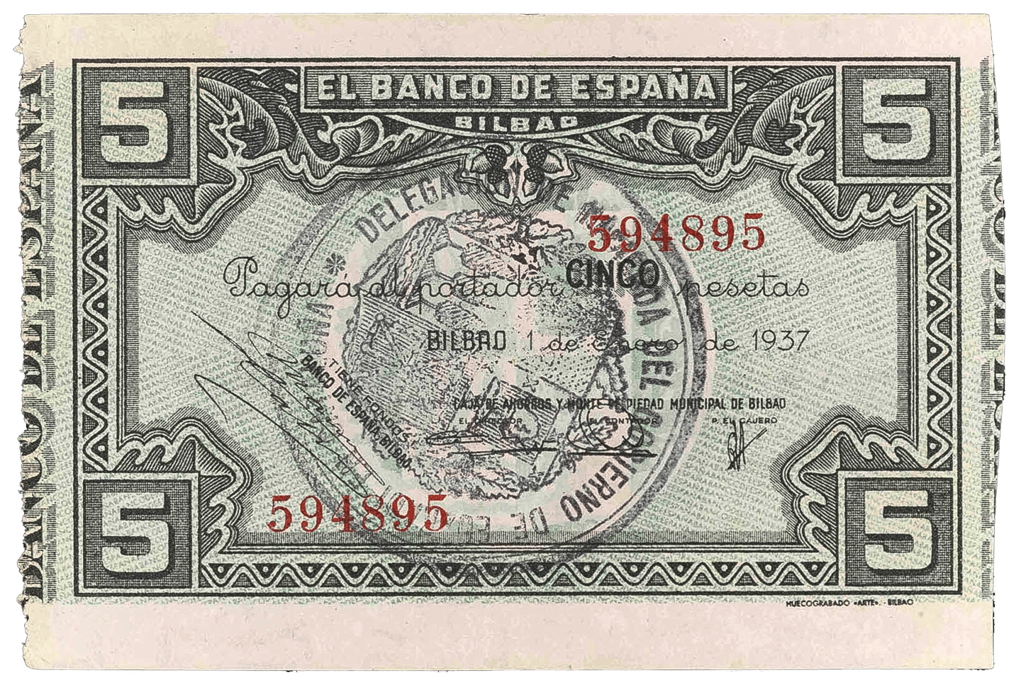 Al rendirse el ejercito de Euskadi en agosto, el Gobierno regional se traslado a Catalunya instalando su delegación, en el Paseo de Gracia, n 60 de Barcelona. La Generalitat autorizo que sus talones pudiesen circular en Catalunya, pero ignoramos con que limitaciones y si se emitió el decreto oportuno de autorización. Para validar la circulación de los talones se estamparon los sellos de tampón.