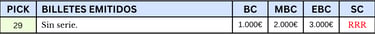 Impreso en calcografía. Marca de agua: Banco de España, cifras del valor.