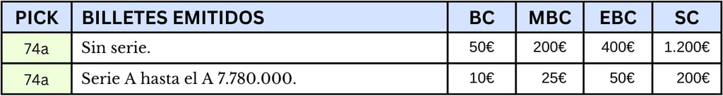 Números posteriores al A 7.780.000, B, C, D y E fueron puestos en circulación durante la guerra civil española.